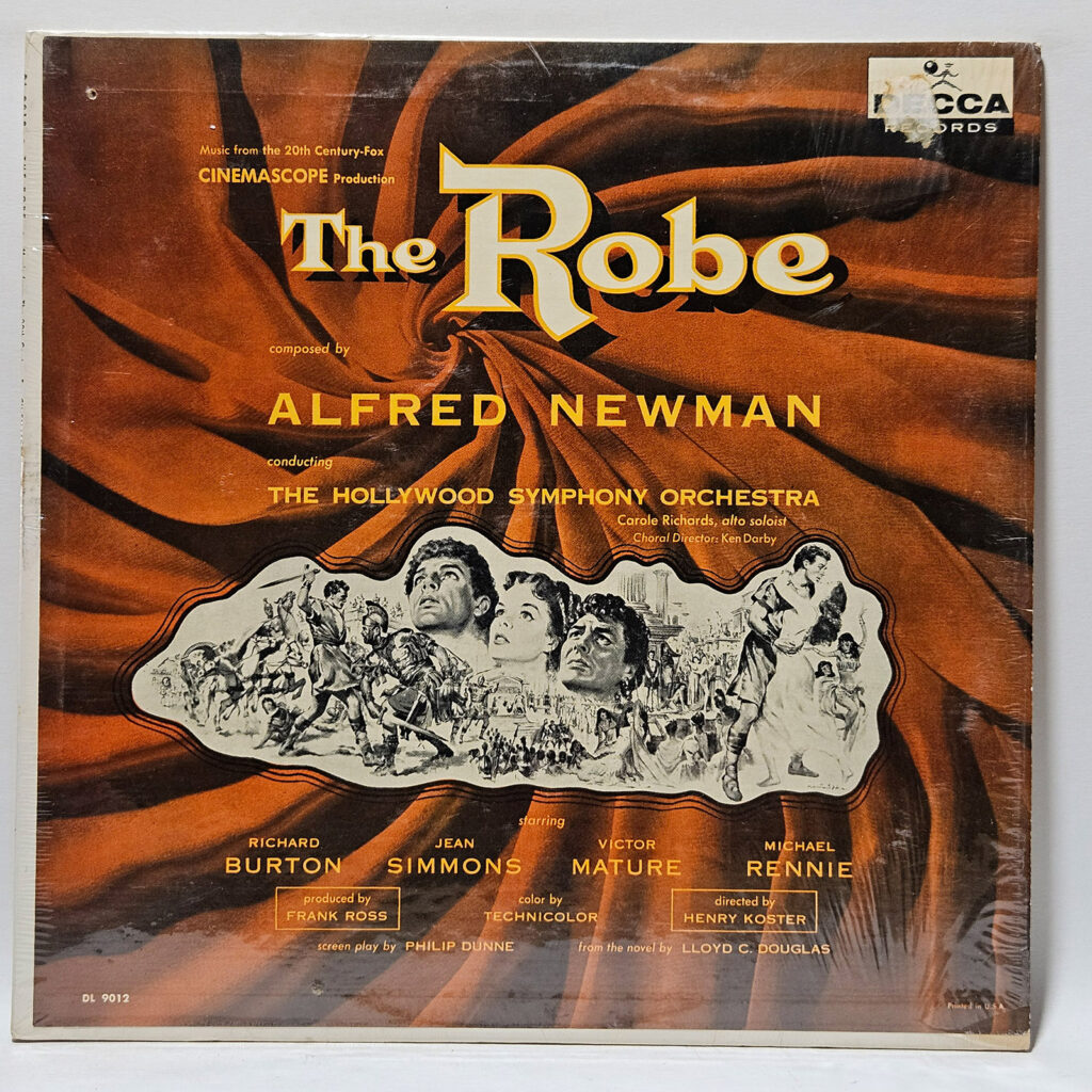 Alfred Newman - The Robe - 1953 Stage & Screen - EX - Ultrasonic Clean - repress still in shrinkwrap, burgundy Decca is the nicest by far! The Robe is the sweeping, dramatic film score composed by Alfred Newman for the 1953 biblical epic The Robe, one of the first CinemaScope spectacles of its era. Newman’s score is grand, orchestral, and reverent, full of bold brass, lush strings, and that golden-age Hollywood gravitas that defined mid-century studio filmmaking. It’s classic epic soundtrack material, built for big screens. - The record has been cleaned using ultrasonic technology and is in strong EX/EX condition. The cover is crisp, only a VG+ because of age!