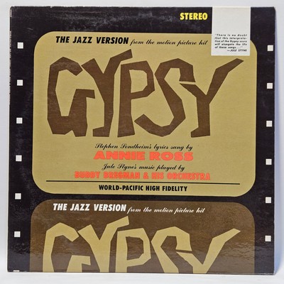Annie Ross / Buddy Bregman & His Orchestra - Gypsy (The Jazz Version) - 1962 Jaz Red disk! Blue label with silver print. 1st Stereo issue. The cover has a "celluloid" theme, like a movie frame, with stylized lettering and no picture, it's a second pressing of this LP with an alternate cover. Another (presumably earlier) version has a photo and a reference to the broadway show rather than the movie. - The record has been cleaned using ultrasonic technology and is in strong EX/EX condition. The cover is crisp, only a VG+ because of age!