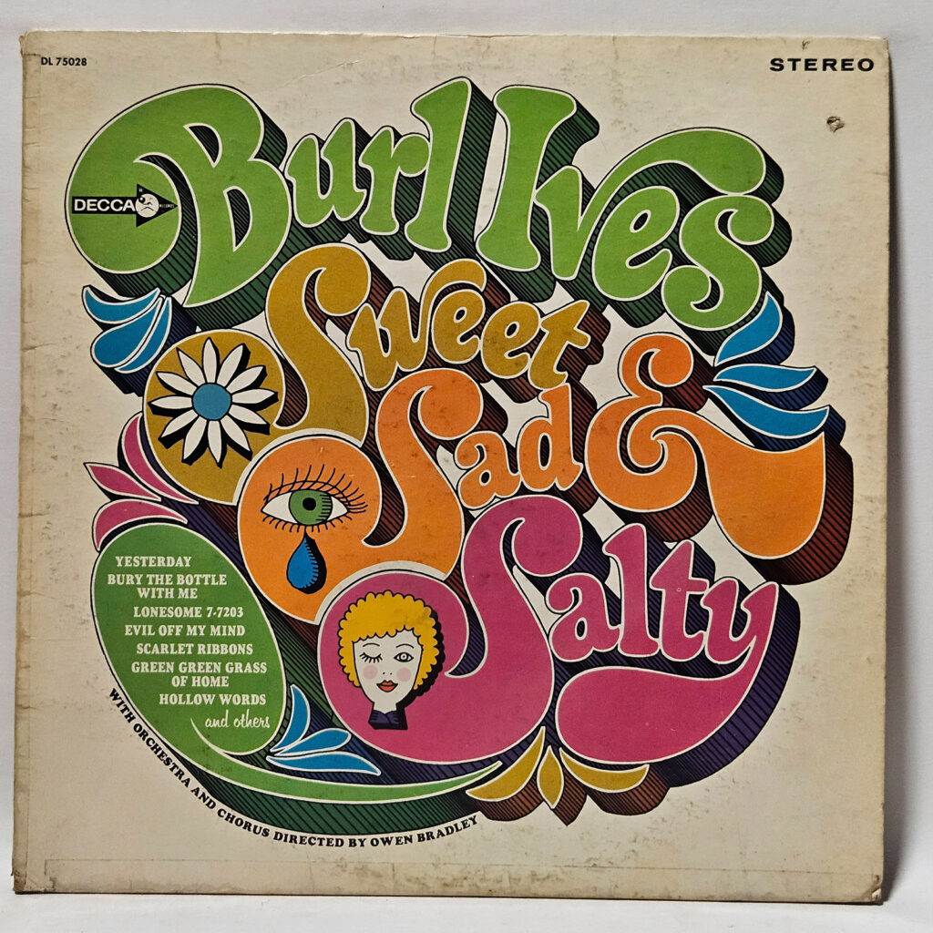 Burl Ives - Sweet, Sad & Salty - 1968 Folk - VG+ - Ultrasonic Clean - it's pretty scruffy, calling it VG+ but it's really the lowest side of EX. Sweet, Sad and Salty finds Burl Ives blending tender ballads, reflective folk, and a touch of wry humor into a record that feels intimate and unforced. It’s Ives at his most human; warm, weathered, and quietly powerful. - The record has been cleaned using ultrasonic technology and is a little rough, in VG+ condition. The cover is crisp, only a VG+ because of age and/or tag residue or writing!