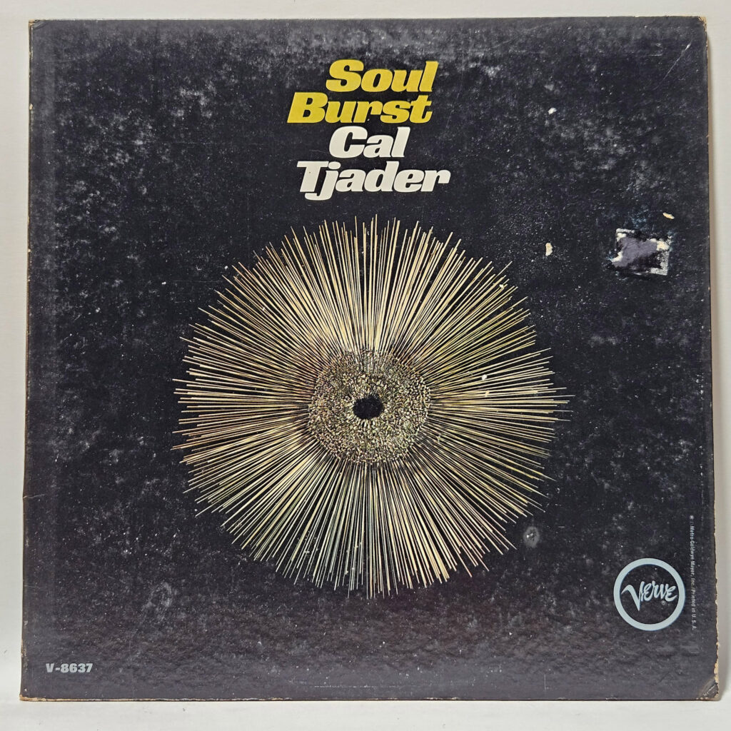 Cal Tjader - Soul Burst - 1966 Jazz - EX - Ultrasonic Clean - WOW! This is a fun one; ok, yes, the sleeve has some damage on the cover, see that section on the right, where a tag must have been, then someone decided to remove it with a jack hammer and attempt to conceal the crime with a sharpie? :D That's it. That's the downside. Now for the awesome: Cover, front and back has been stamped with plus sign, denoting a Verve promotional copy. It's promotional labels on the disk, black on yellow, and let me tell you; the record is STUNNING, absolutely magnificent, super solid EX. Very, very collectible. - The record has been cleaned using ultrasonic technology and is in strong EX/EX condition. The cover is crisp, only a VG+ because of age!