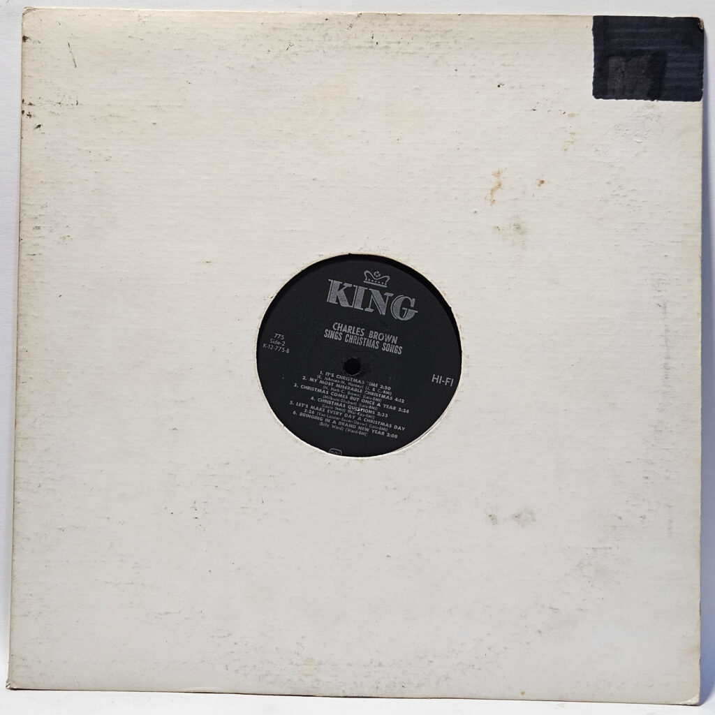 Charles Brown - Charles Brown Sings Christmas Songs - 1966 - VG+ - UltSnc Cln - black King Label - The record has been cleaned using ultrasonic technology and is a little rough, in VG+ condition. The cover is crisp, only a VG+ because of age and/or tag residue or writing!