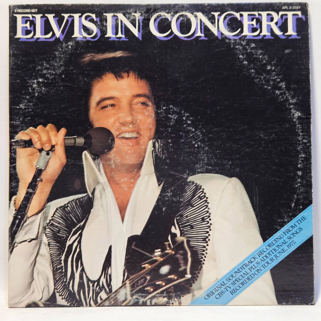 Elvis Presley - Elvis In Concert - 1977 - VG+ - Ultrasonic Clean - Scruffy blue RCA records, playable, just a lot of hairlines. - The record has been cleaned using ultrasonic technology and is a little rough, in VG+ condition. The cover is crisp, only a VG+ because of age and/or tag residue or writing!