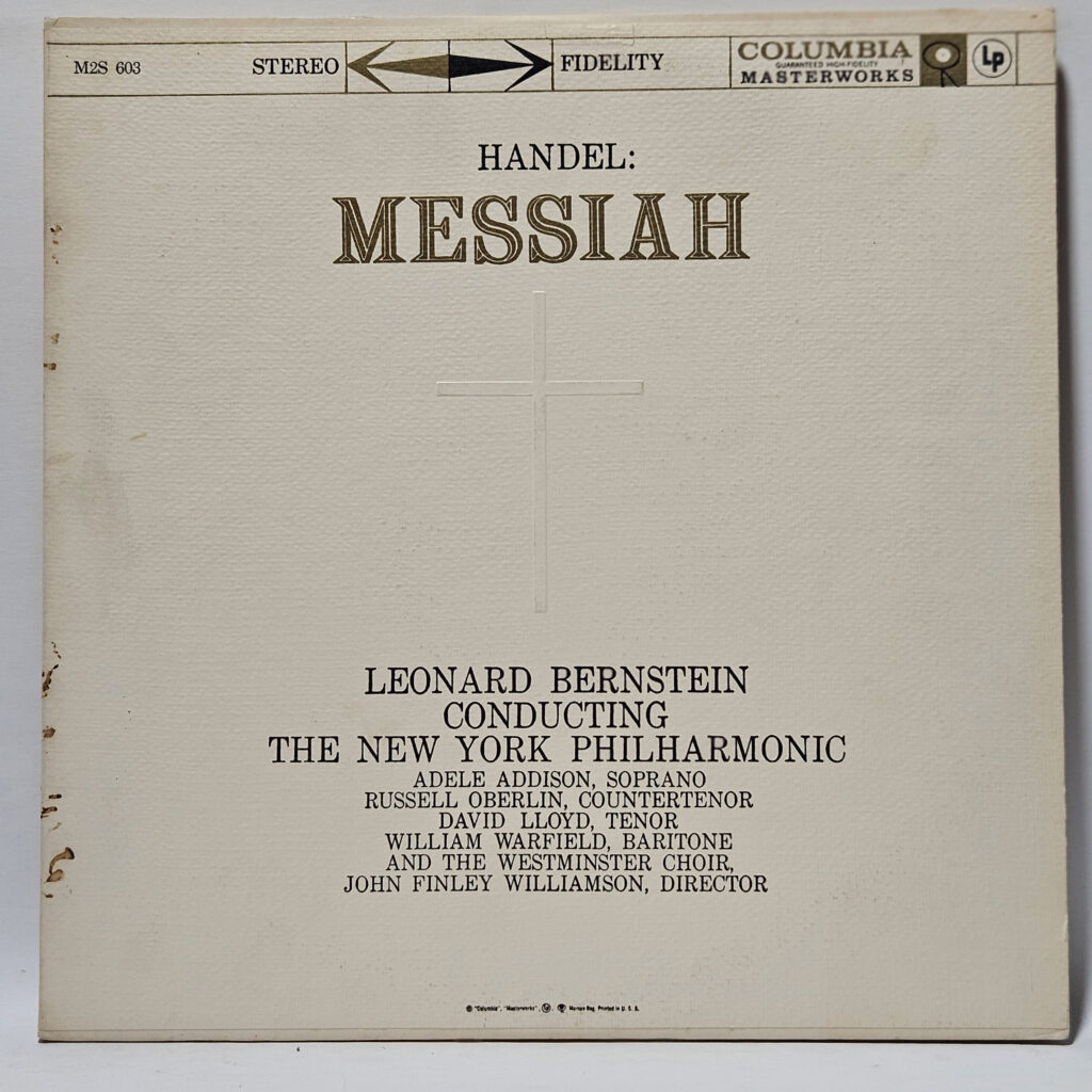 Georg Friedrich H¤ndel - Messiah - 1958 Classical - EX - Ultrasonic Clean - This would have been magnificent brand new.. Side 1 has some hairline zaniness at the beginning, but then is pretty much superb on the other three sides. Textured cover is quite solid, I don't have a lab to identify whatever is staining that side on the left by the spine? If I had to guess, coffee? - The record has been cleaned using ultrasonic technology and is in strong EX/EX condition. The cover is crisp, only a VG+ because of age!