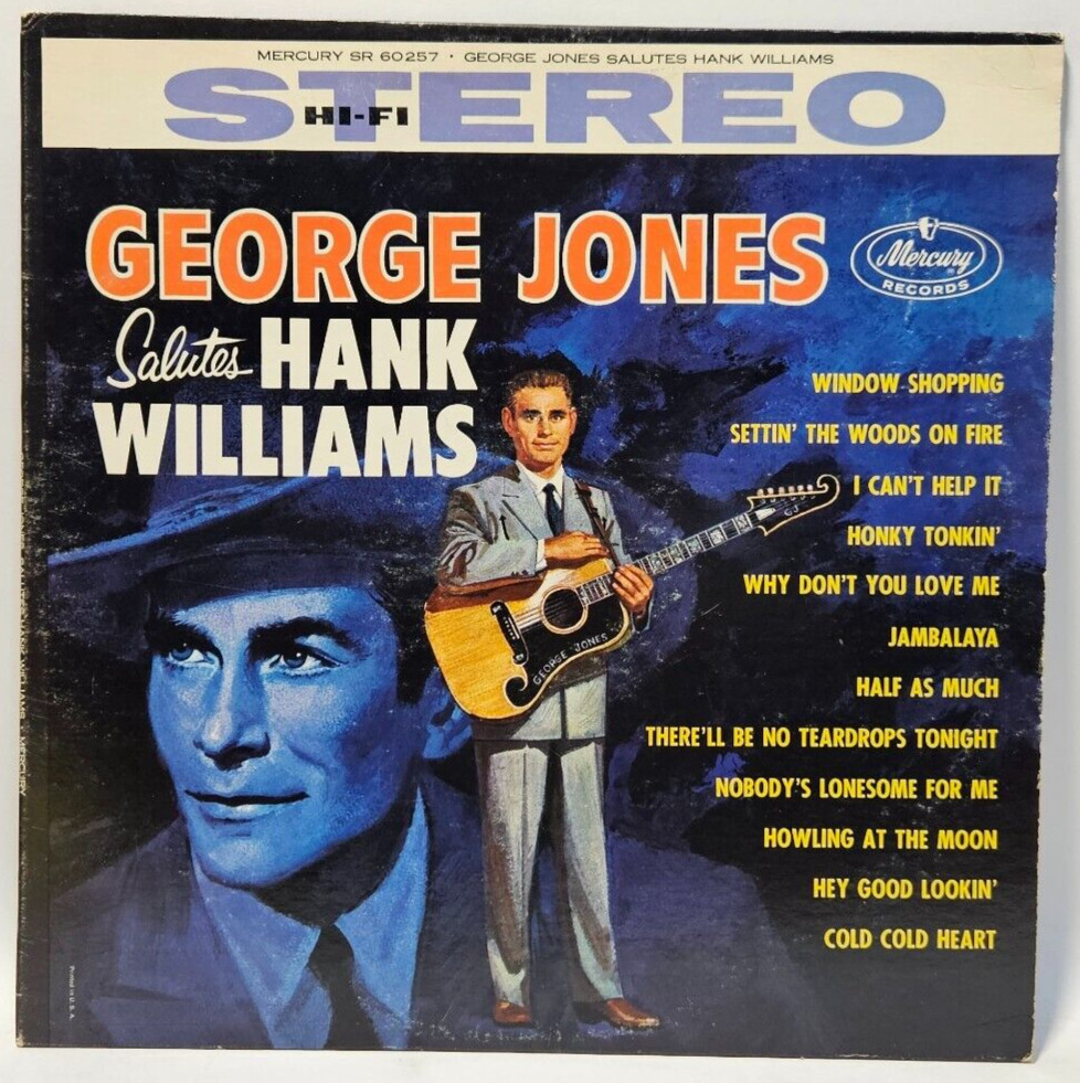George Jones - Salutes Hank Williams - 1960 Country / Honky Tonk - EX - Very, very nice. The record has been cleaned using ultrasonic technology and is in strong EX/EX condition, just some scuffing and a few hairlines from being stored in a sleeve for decades. The cover is very nice and crisp, only a VG+ because of age!
