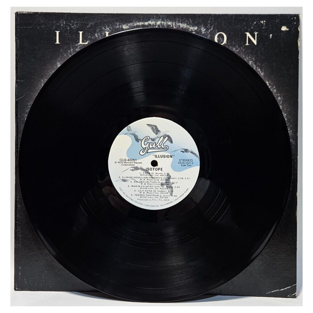 Isotope – Illusion – 1975 JAZZ FUSION – GULL GU6-402S1 – EX – The record has been cleaned using ultrasonic technology and is in strong EX/EX condition bordering on NM. The cover is very nice and crisp, only a VG+ because of age!