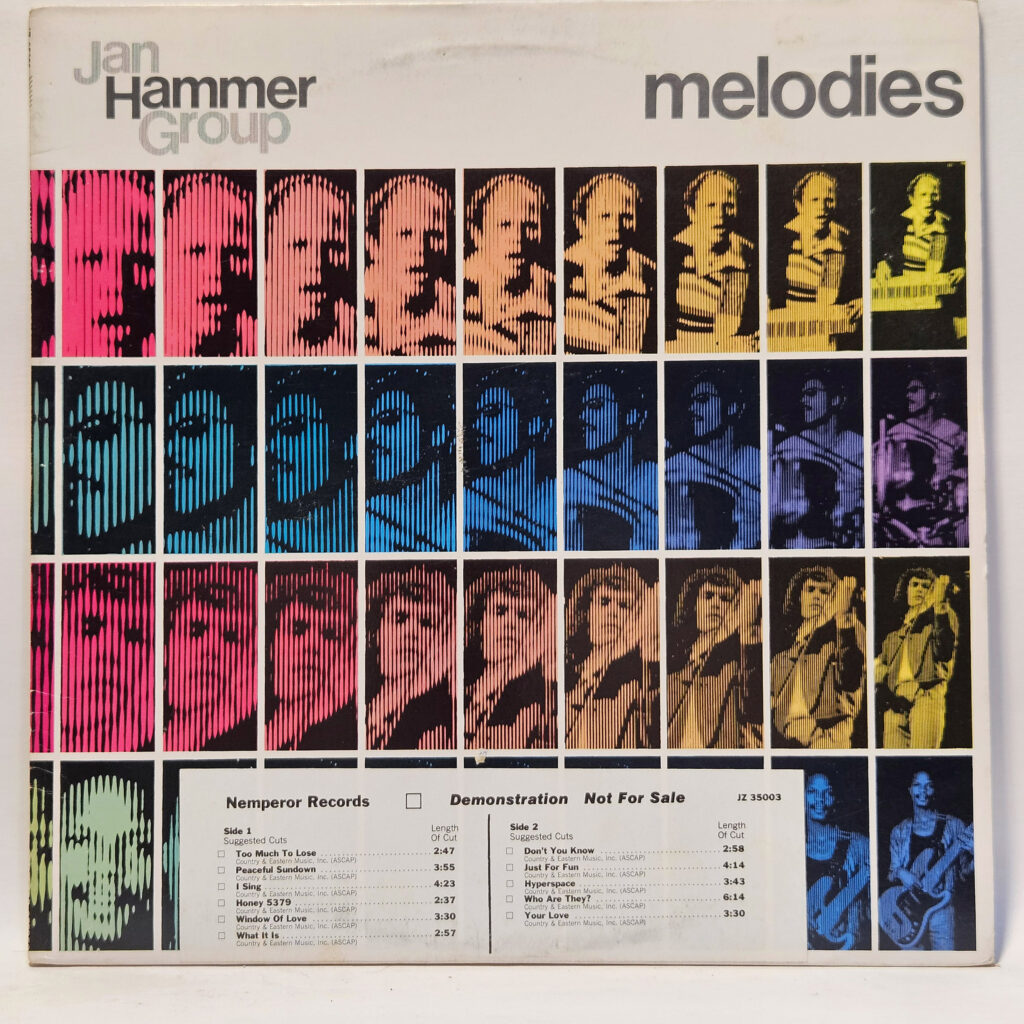 Jan Hammer Group - Melodies - 1977 Jazz - EX - Ultrasonic Clean - Nice promo copy! Gold stamp on back as well, record is VERY nice.  - The record has been cleaned using ultrasonic technology and is in strong EX/EX condition. The cover is crisp, only a VG+ because of age!