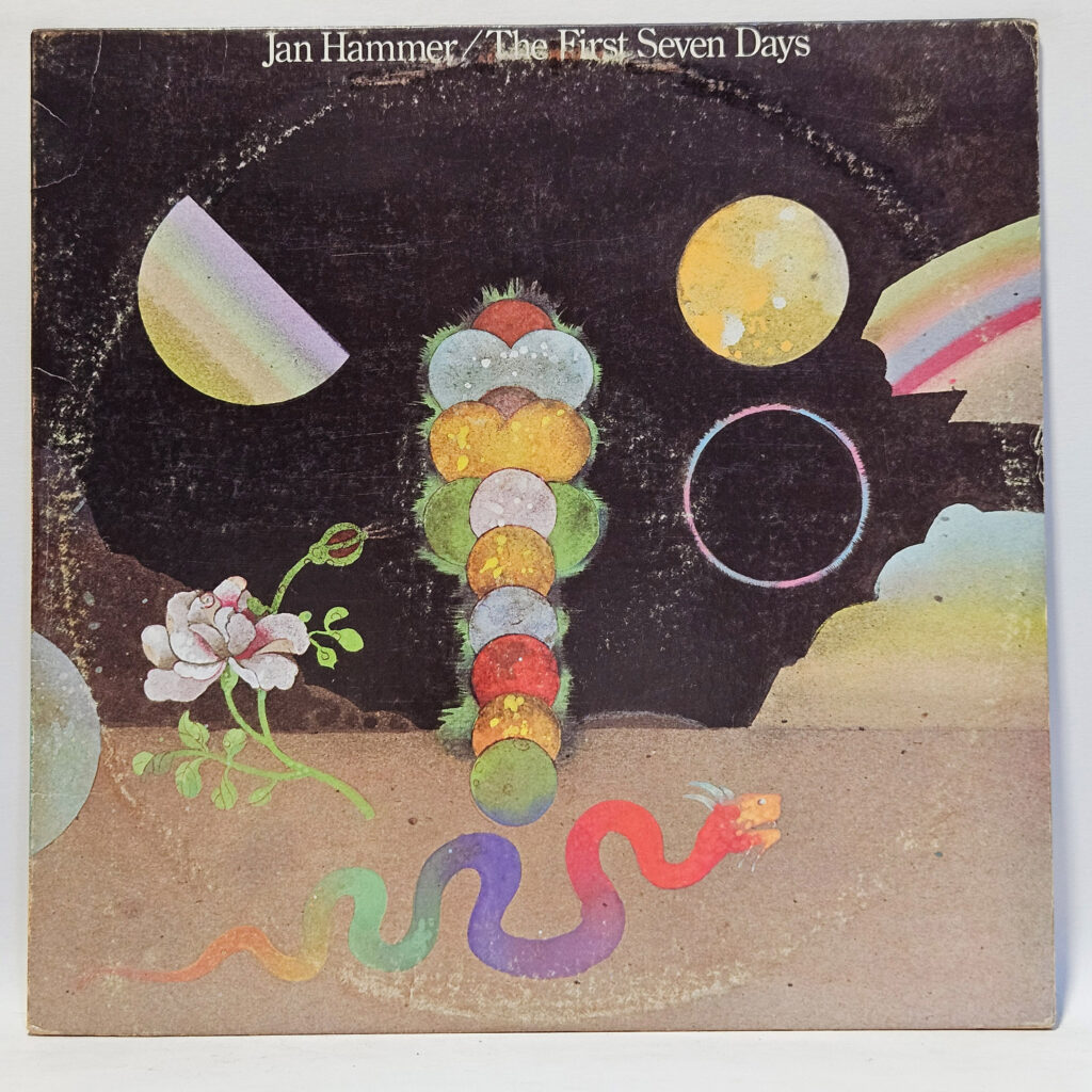 Jan Hammer - The First Seven Days - 1975 - EX - Ultrasonic Clean - VERY nice EX record, tempting to keep this one! - The record has been cleaned using ultrasonic technology and is in strong EX/EX condition. The cover is crisp, only a VG+ because of age!