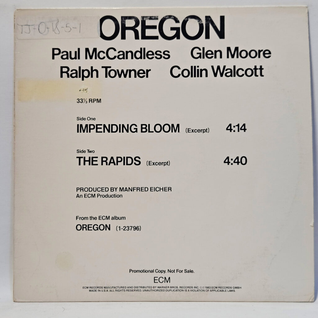 Oregon - Impending Bloom - 1983 Jazz - EX - Ultrasonic Clean - A little scruffy, obvious radio copy, but still an EX. Cover has typical radio station numbering systems.. - The record has been cleaned using ultrasonic technology and is in strong EX/EX condition. The cover is crisp, only a VG+ because of age!