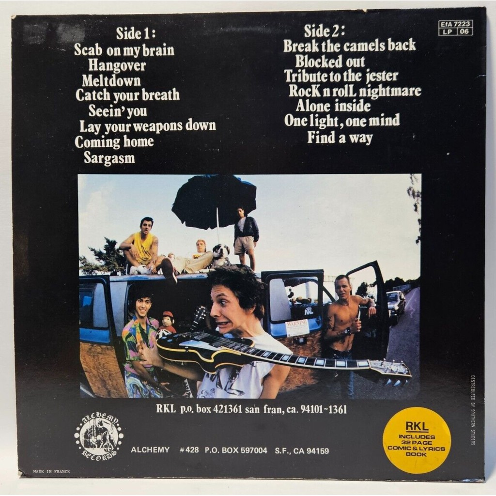 Rich Kids On LSD – Rock N Roll Nightmare – 1987 Punk – 1st Pressing – EX – Ultrasonic Clean – The record has been cleaned using ultrasonic technology and is in super strong EX/EX condition; it has only the faintest of slight hairlines, likely from removing it from the old inner. The cover, insert and comic book are crisp, only an EX because of age; there’s some minor chipping on the cover, and a chip on the back of the comic book from riding in the sleeve with the vinyl – there’s two copies on this level on discogs, that they want $250 and $500 for respectively.. don’t confuse this with the Epitaph reissue.