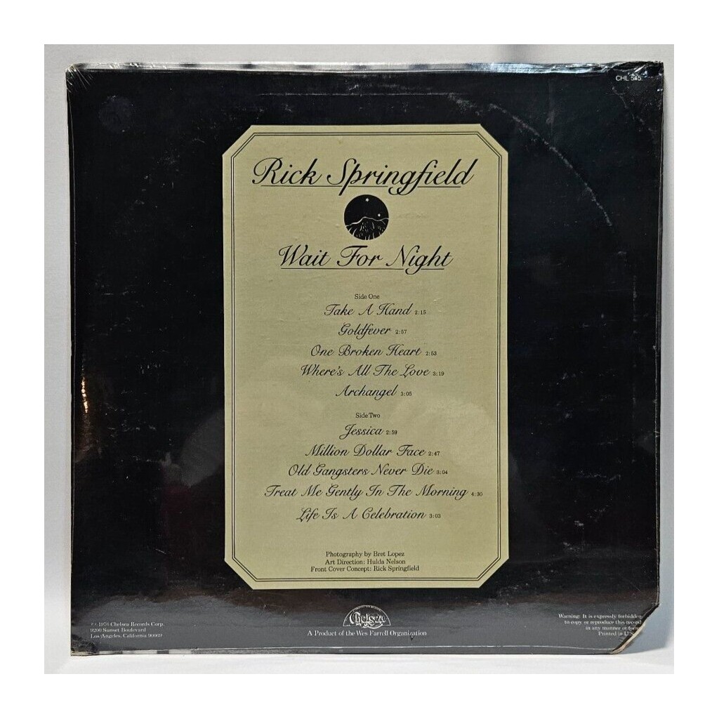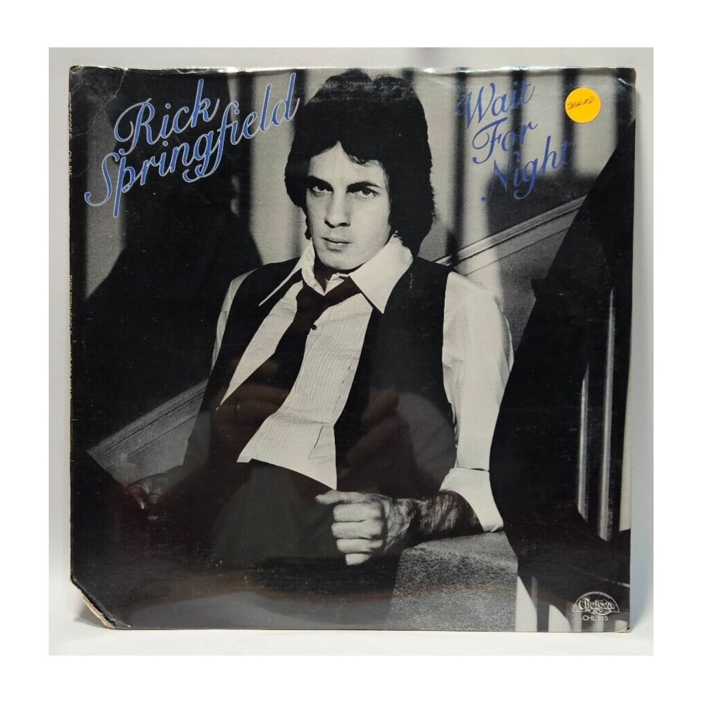 Wait for Night is the fourth studio album by Australian singer-songwriter Rick Springfield, originally released by Chelsea Records in 1976 (this is an original sealed copy from 1976, a cutout copy). The album was reissued by RCA Records in 1982 (with an enclosed poster from his 1982 “Sweat For Success” tour and an alternate cover that added a handwritten note from Rick and colored paint strokes on the original cover’s B&W photo), and that version managed to crack into the Billboard album charts. The album was reissued on CD in 2010 by Wounded Bird Records.