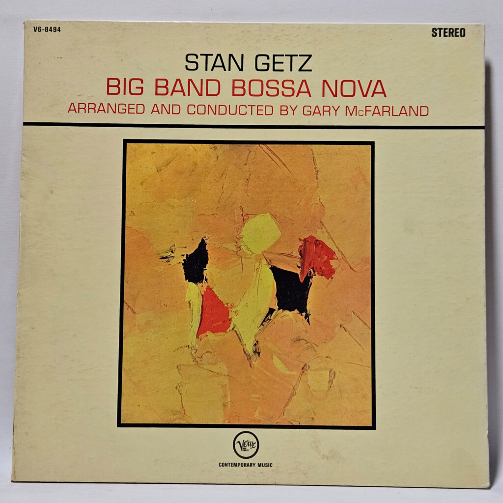 Stan Getz - Big Band Bossa Nova - 1962 Jazz - VG - Ultrasonic Clean - It's so much nicer than you think, I had such high hopes for this one, but it's scruffy and has hairlines and some mild scuffing. It's probably more like VG+, but staying with a conservative grade. - The record has been cleaned using ultrasonic technology and is rough but playable, in VG condition. The cover is crisp, only a VG+ because of age and/or tag residue or writing!