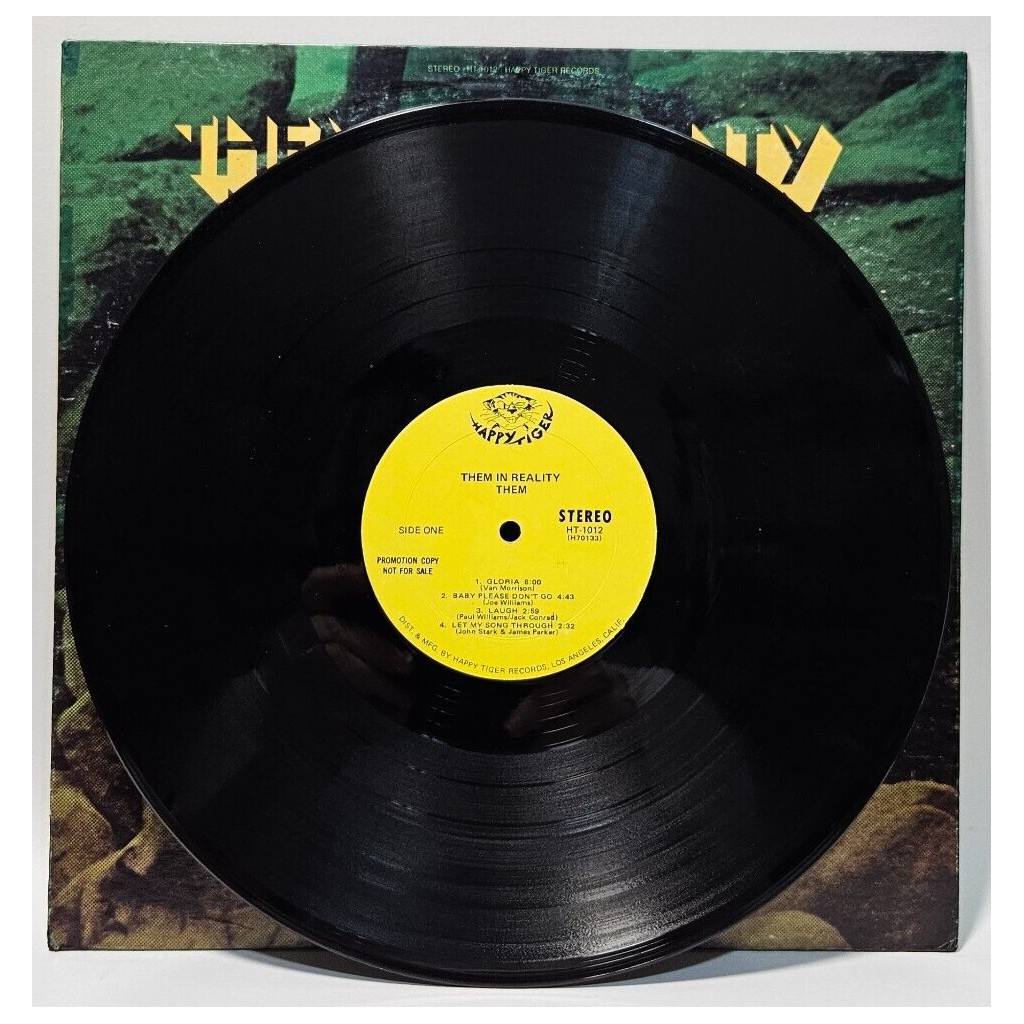 Them – Them In Reality – Happy Tiger HT1012 – Terre Haute Pressing – EXÂ The record has been cleaned using ultrasonic technology and is in deep, deep solid EX/EX condition – very nice, has some minor staining that keeps it from NM. The cover is very nice and crisp, only a VG+ because of someone using a green marker on the corners (gah) and age/stains from old price tags!