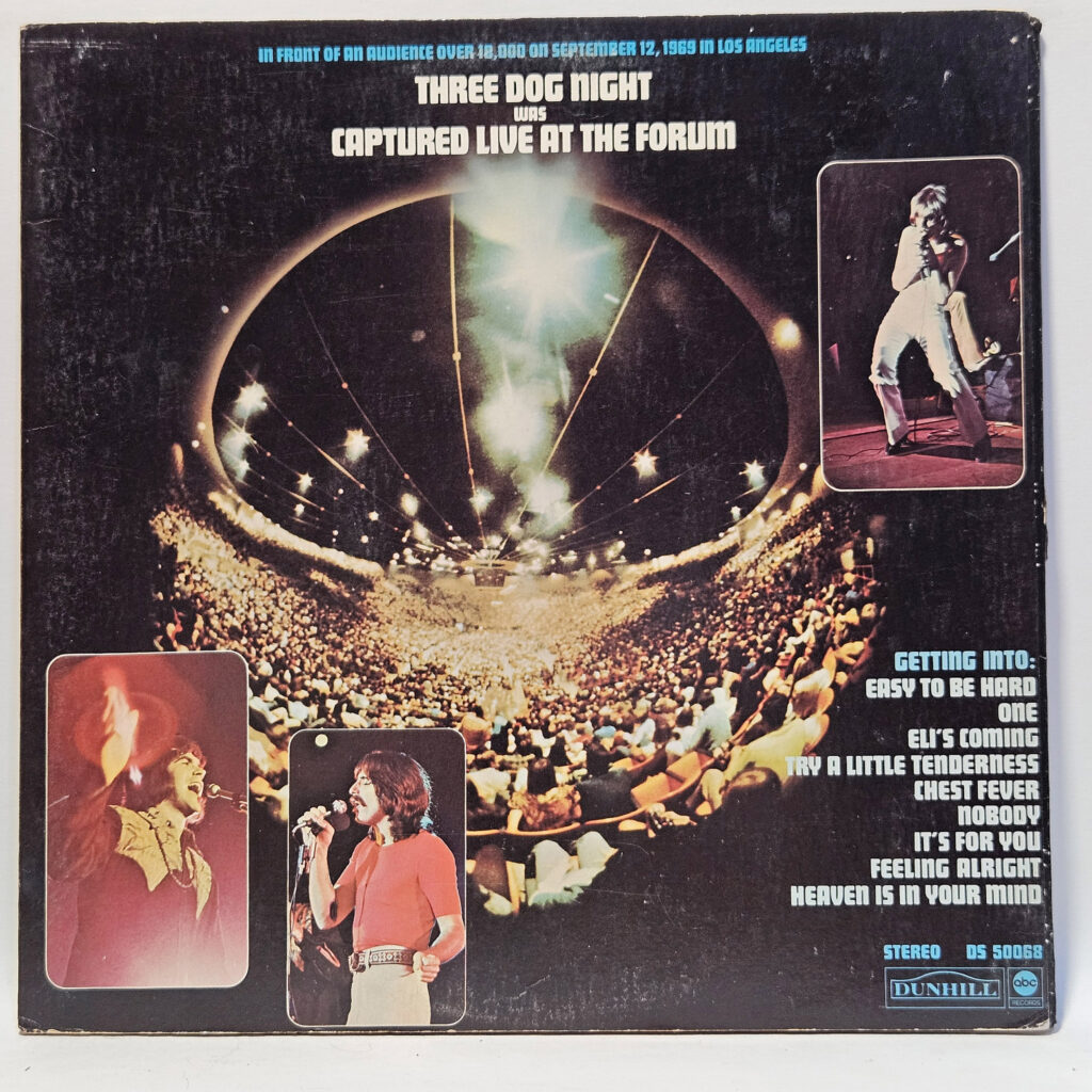 Three Dog Night - Captured Live At The Forum - 1969 - EX - Ultrasonic Clean - Solid EX vinyl, Unipak cover has sharpie on inside cover and back of cover, someone concealing damage/age? Still worth it for the solid vinyl. - The record has been cleaned using ultrasonic technology and is in strong EX/EX condition. The cover is crisp, only a VG+ because of age!