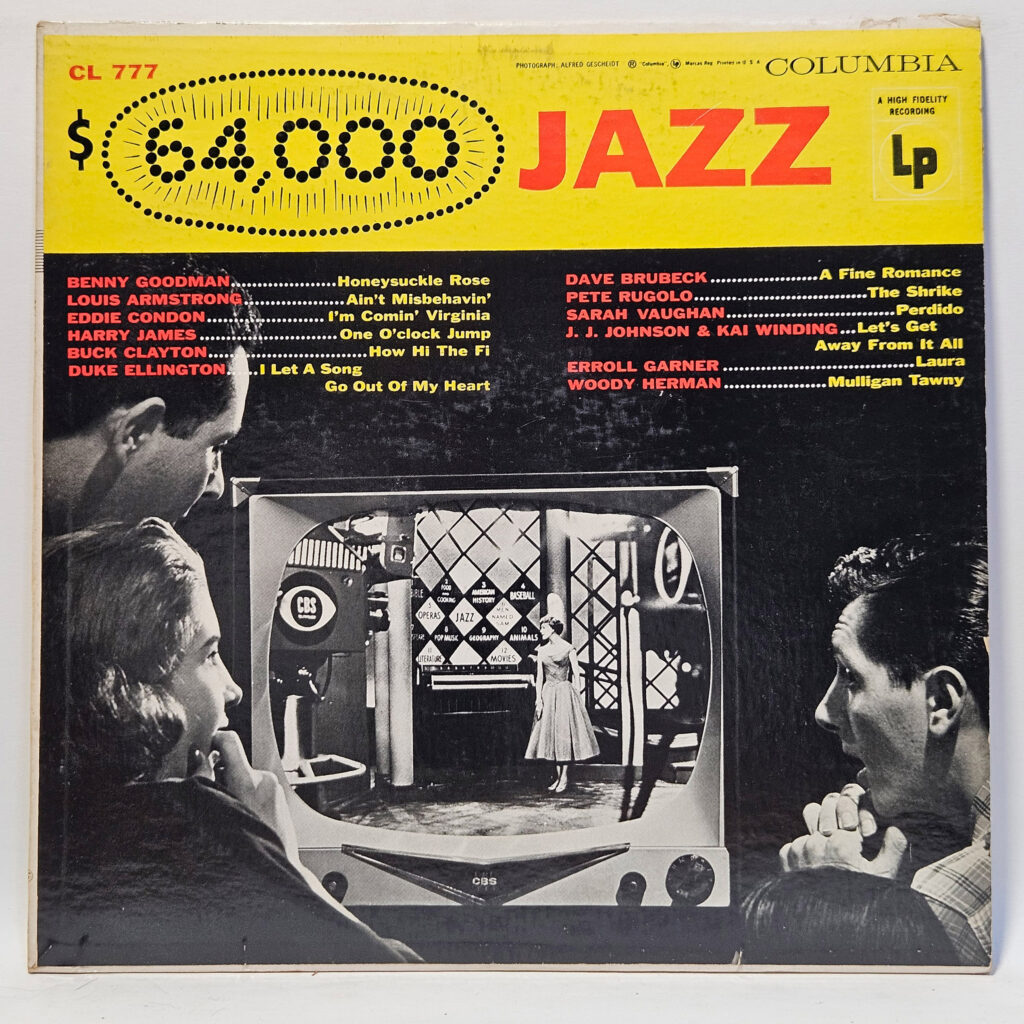 Various - $64,000 Jazz - 1955 Jazz - EX - Ultrasonic Clean - Solid 6 eye Columbia, has some trivial scufflines and hairlines, but I think you'll be surprised at how shiny and playable this. - The record has been cleaned using ultrasonic technology and is in strong EX/EX condition. The cover is crisp, only a VG+ because of age!