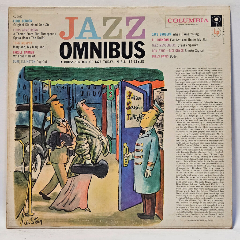 Various - Jazz Omnibus - 1957 Jazz - EX - Ultrasonic Clean - Outstanding disk, very, very light hairlines and scuffing, brilliant and shiny as an easy EX grade with Miles Davis, Errol Garner, Duke, Armstrong, Brubeck and more! - The record has been cleaned using ultrasonic technology and is in strong EX/EX condition. The cover is crisp, only a VG+ because of age!